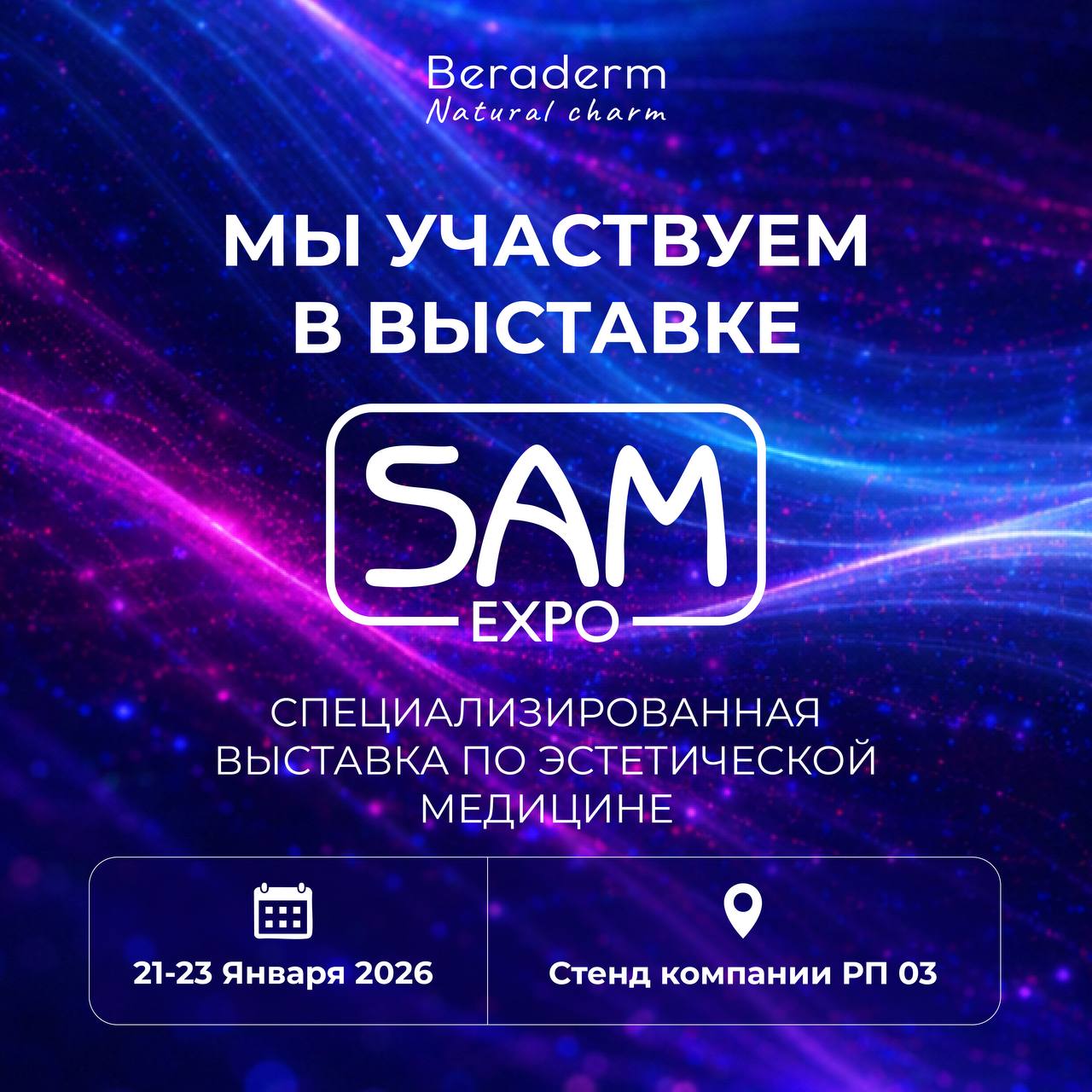 Компания Beraderm приняла участие в специализированной выставке по эстетической медицине SAM EXPO, которая проходит с 21 по 23 января 2026 года в Москве.